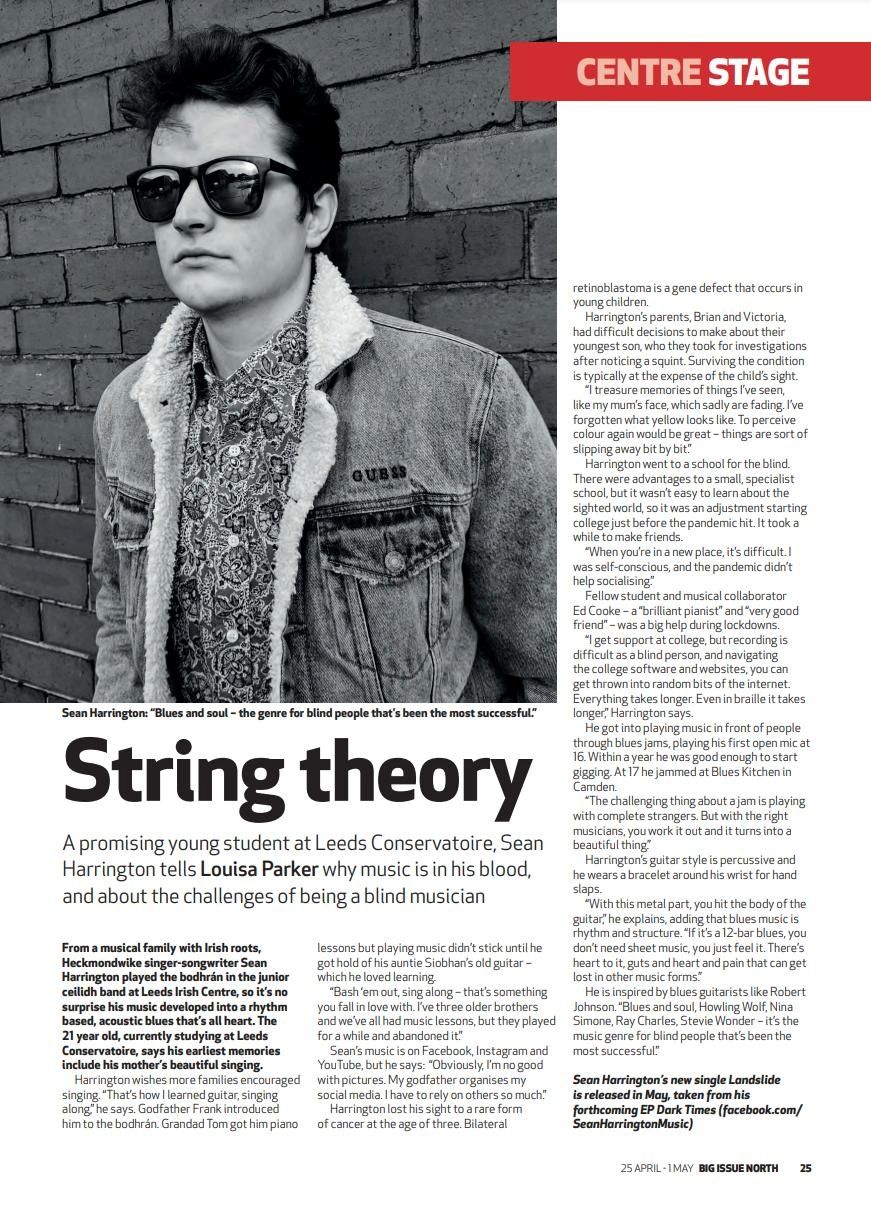 Blind from the age of 3, his disability allows him to forge a uniquely honest connection with his audience. Authenticity is very important to Sean, who idolises artists in blues, folk and punk who kept their music raw and real.
